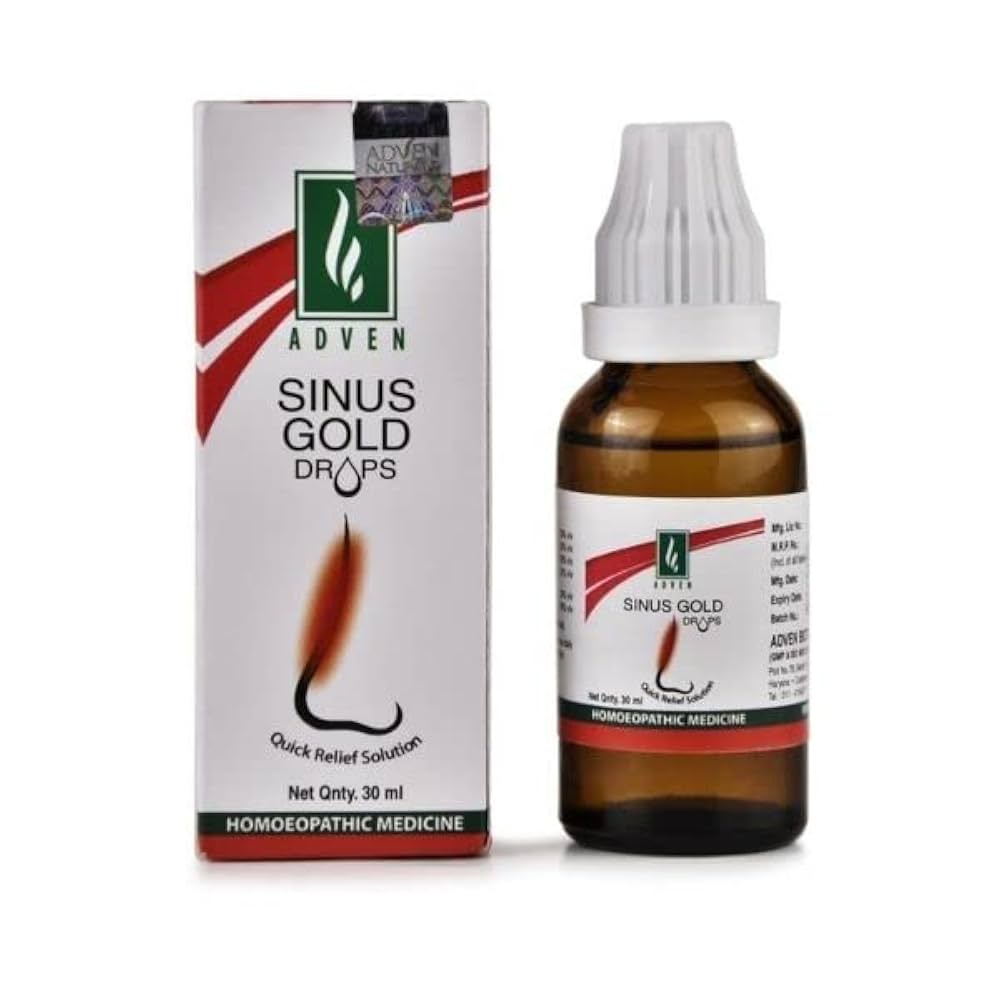 Adven Sinus-Gold Drop treats acute/chronic sinusitis and other associated symptoms like headache, nasal blockage, nasal polyp, sneezing, blocked nose and cheek pain.