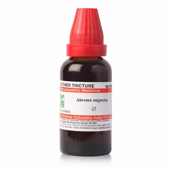 Dr Willmar Schwabe India Abroma Augusta Mother Tincture is a homeopathic remedy used as a traditional supplement. It is often used for general wellness. It may be considered as an option for menstrual irregularities and symptoms associated with bodily weakness and exhaustion under medical supervision.