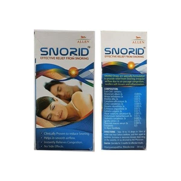 Allen Snorid Drop is a homoeopathic medicine intended for use in managing symptoms such as snoring and nasal congestion.